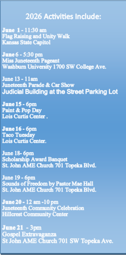 Come see the latest in what we have to offer in activities including free swimming for the kids, speakers, and performances celebrating our history and Juneteenth in Topeka.